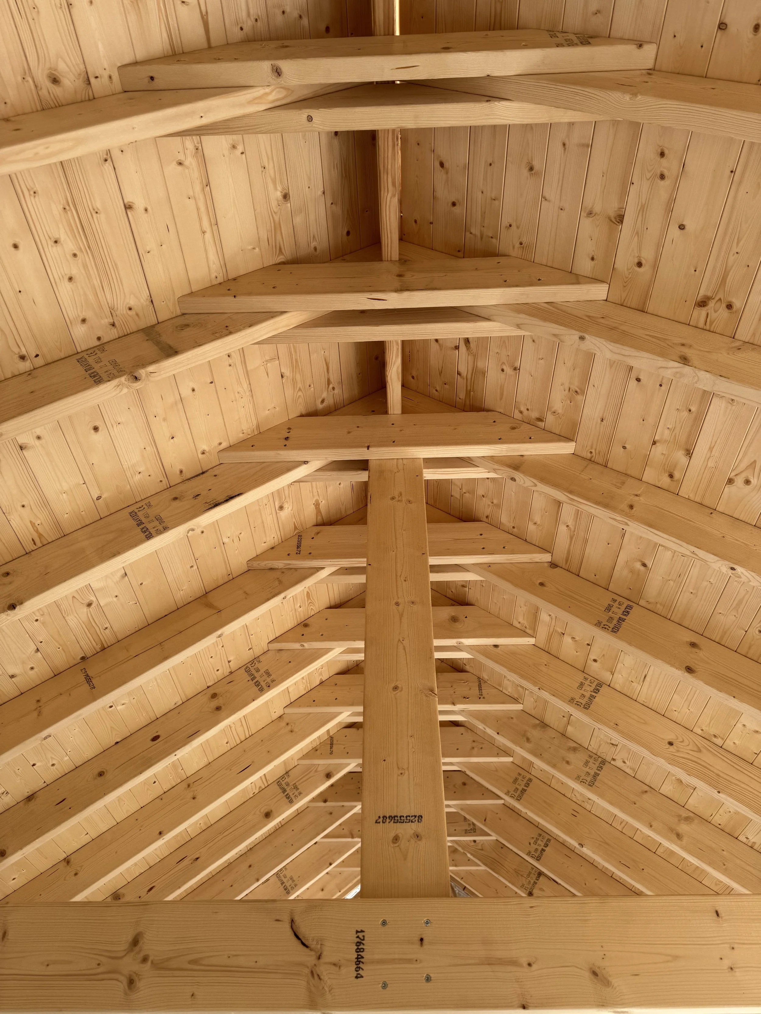 Bovendien biedt dit ontwerp de mogelijkheid om een kleine verdieping onder het dak te creëren — ideaal voor extra opslag of een gezellige slaap- of hobbyhoek.