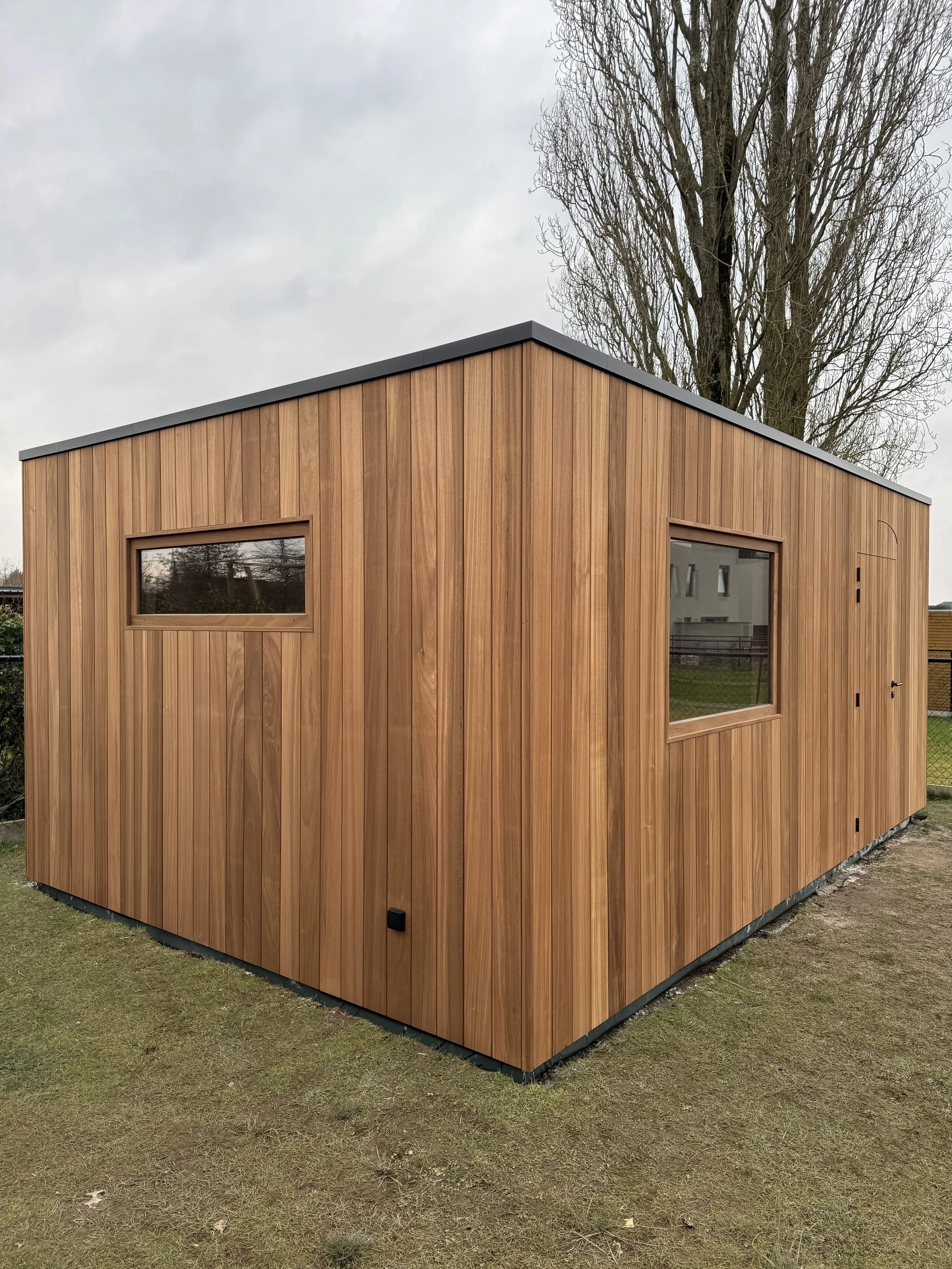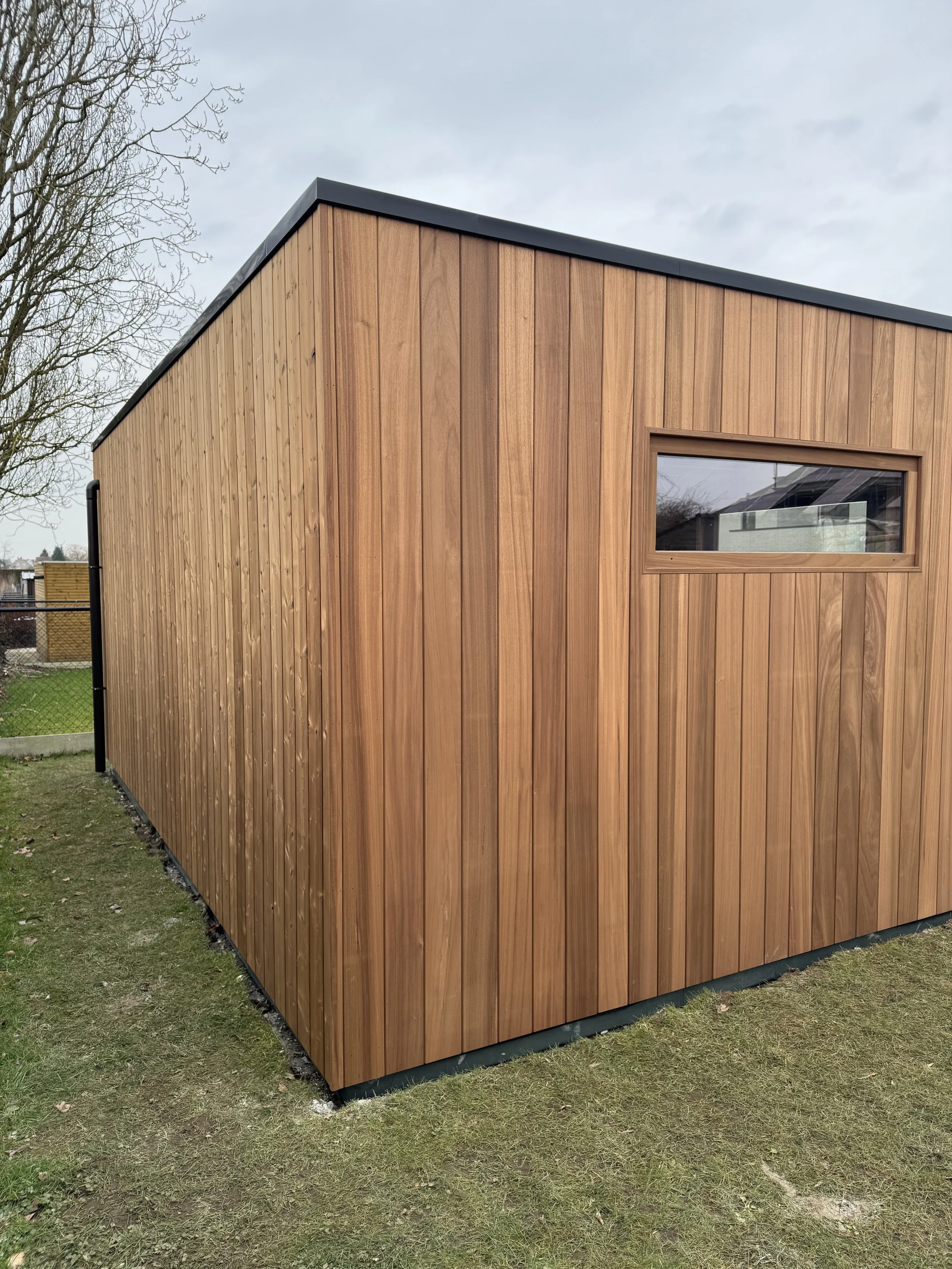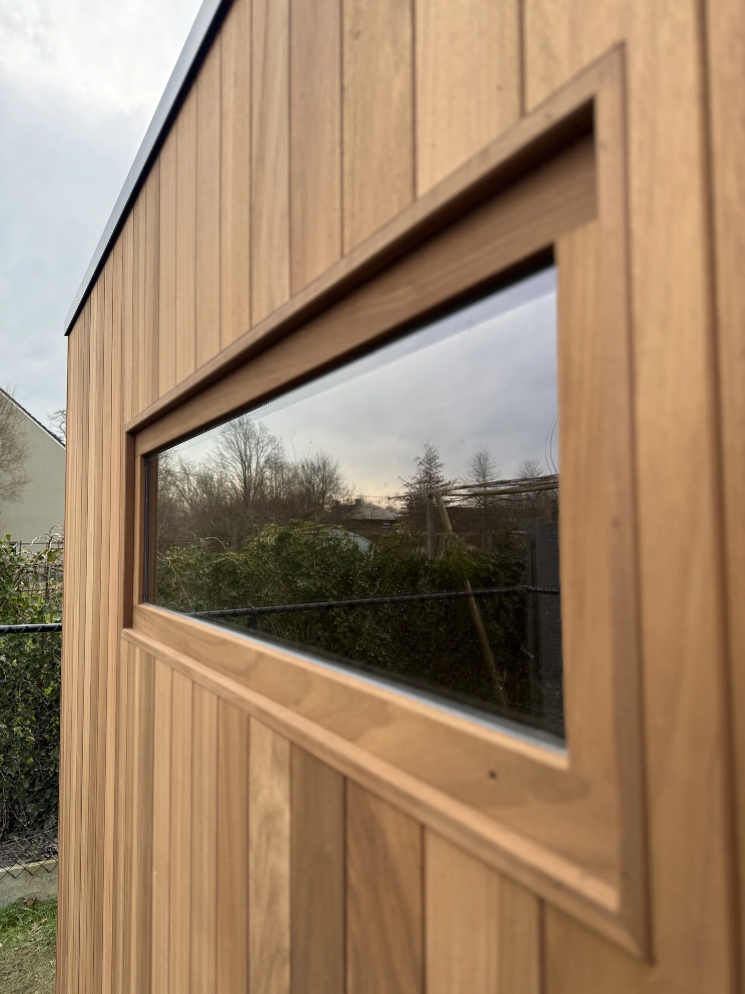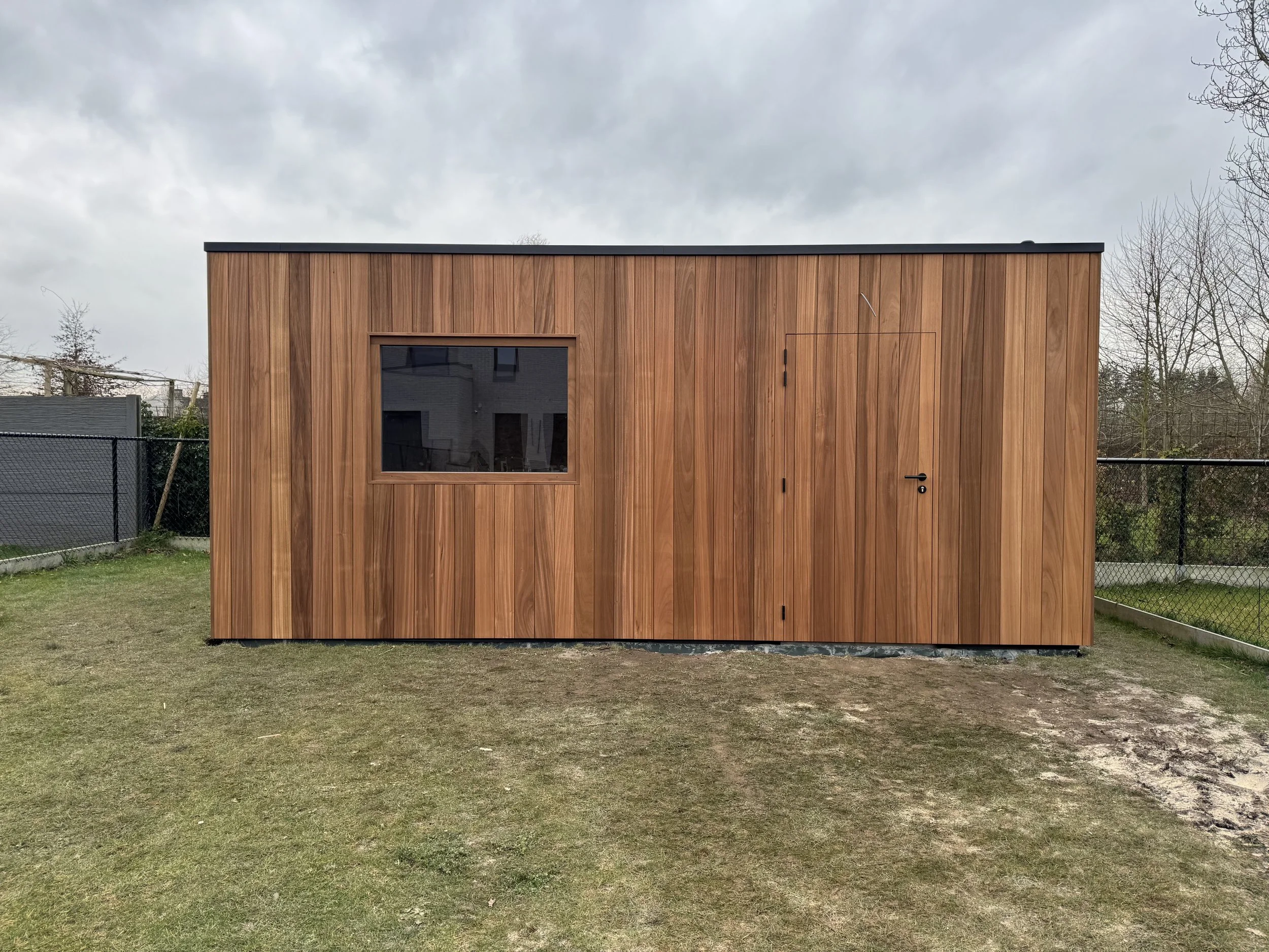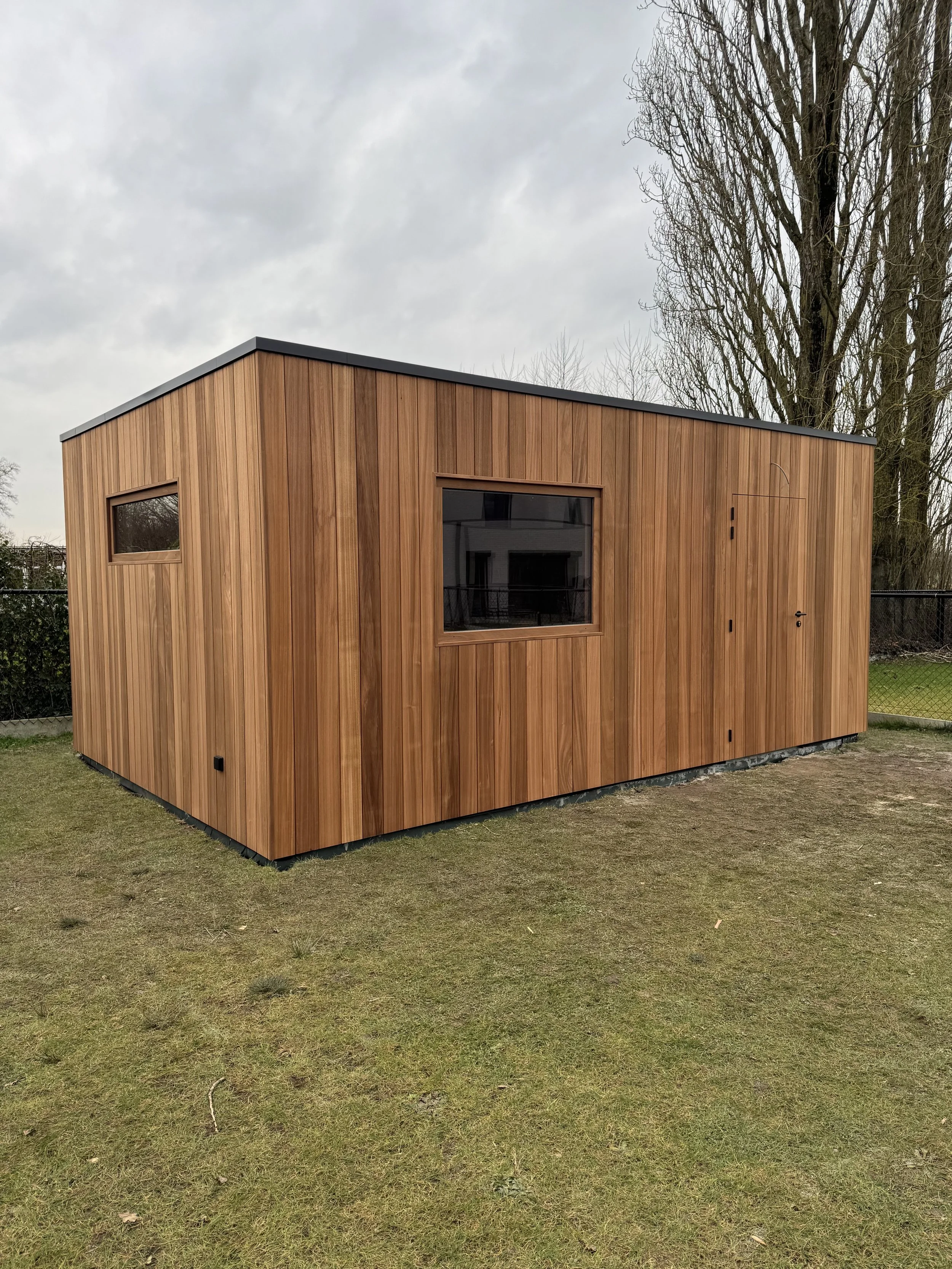Deze stijlvolle tuinberging in Wetteren combineert functionaliteit met een warme, natuurlijke uitstraling. Dankzij de twee strategisch geplaatste ramen baadt de ruimte in natuurlijk licht, waardoor ze perfect is als berging, werkruimte of zelfs een bureau. De binnenkant is afgewerkt met OSB, wat niet alleen zorgt voor een robuuste en moderne look, maar in combinatie met isolatie ook een aangename werkomgeving creëert. De buitenkant is bekleed met duurzame thermo ayous planchetten, die een elegante en tijdloze afwerking geven. Een praktische en esthetische toevoeging aan de tuin, ontworpen voor veelzijdig gebruik!